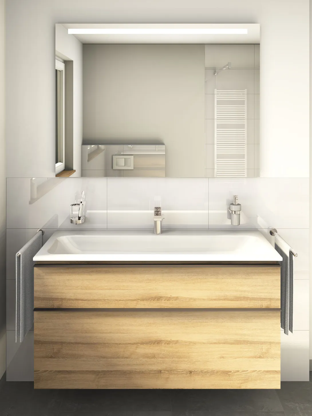 Die preiswertere Kategorie ist das Economy-Bad mit Standardformaten bei Fliesen und sanitären Einrichtungsgegenständen. Auf schönes Design müssen Sie dabei aber keinesfalls verzichten. Ein gutes Economy-Bad verbindet die gewohnte Anmutung eines klassischen Badambientes mit zeitgemäßem Design.