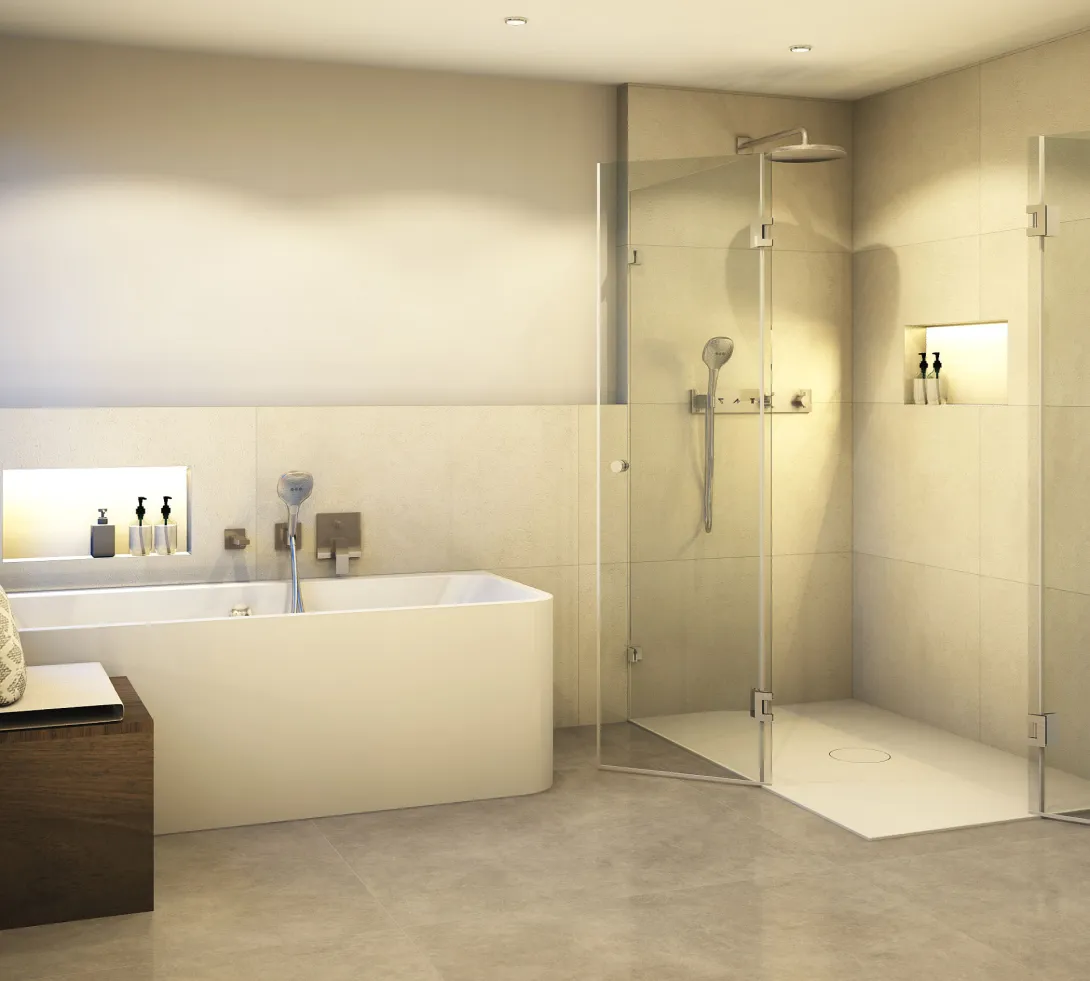 Das Premium-Bad ist ein für Sie persönlich geplantes Traumbad mit designorientierter Ausstattung, optional frei stehender Badewanne, Dampfdusche oder Whirlpool. Hochwertige Putz- und Spachteltechnik oder die Verarbeitung von Natursteinmaterialien macht Ihr Bad zur einem exklusiven Ort für Ihre Entspannung. Zur stimmungsvollen Atmosphäre trägt auch ein ausgeklügeltes Lichtdesign bei.