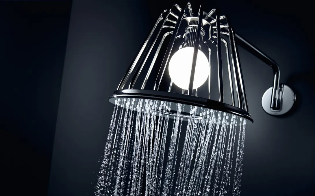 Eine Erweiterung der sinnlichen Wahrnehmung – dafür sorgt die Designkreation des japanischen Büros Nendo. Die Kombination des breiten Regenkranzes mit dem warmen Ambientelicht entschleunigt den Alltag und macht Ihr Badezimmer wohnlicher. Wir beraten Sie gerne zur Wahl der passenden LampShower-Oberfläche für Ihr Badezimmer.