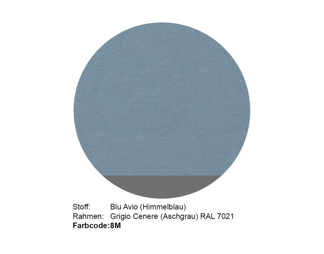- Blu Avio (Himmelblau) und Grigio Cenere (Aschgrau) in einem aschgrauen Rahmen.
