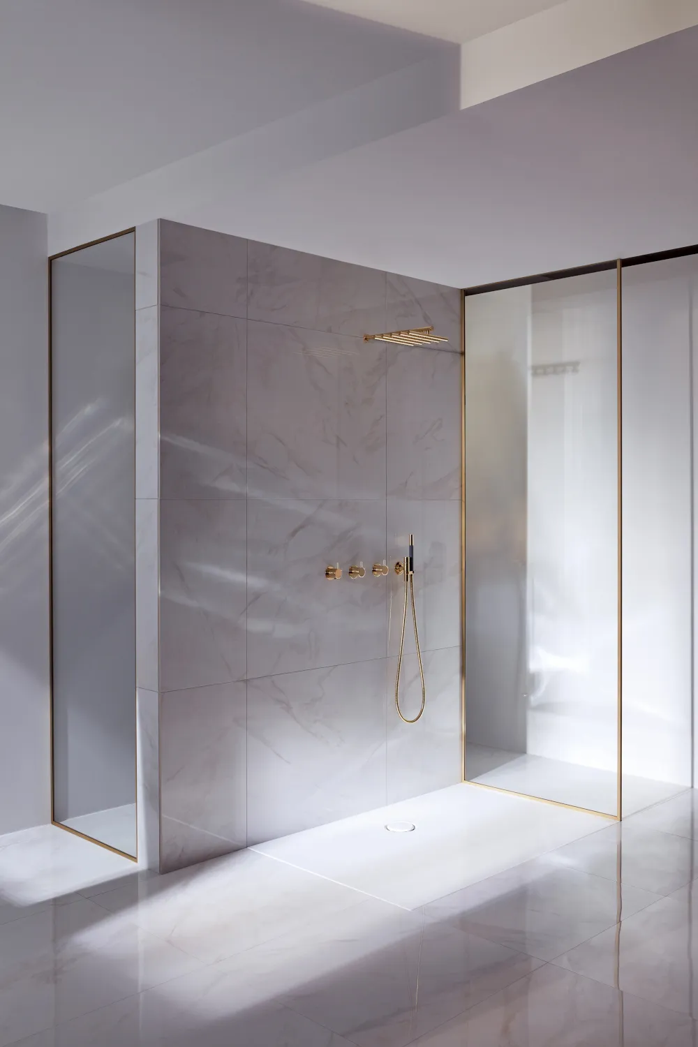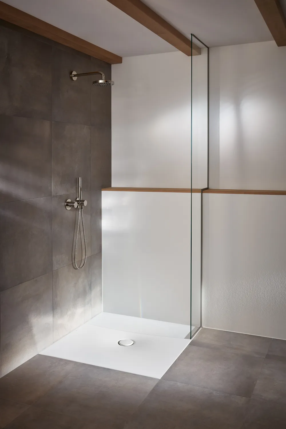 BetteAir ist eine extra-flache Duschfliese aus glasiertem Titan-Stahl. Sie kann wie eine gewöhnliche Fliese direkt auf den Estrich geklebt werden.