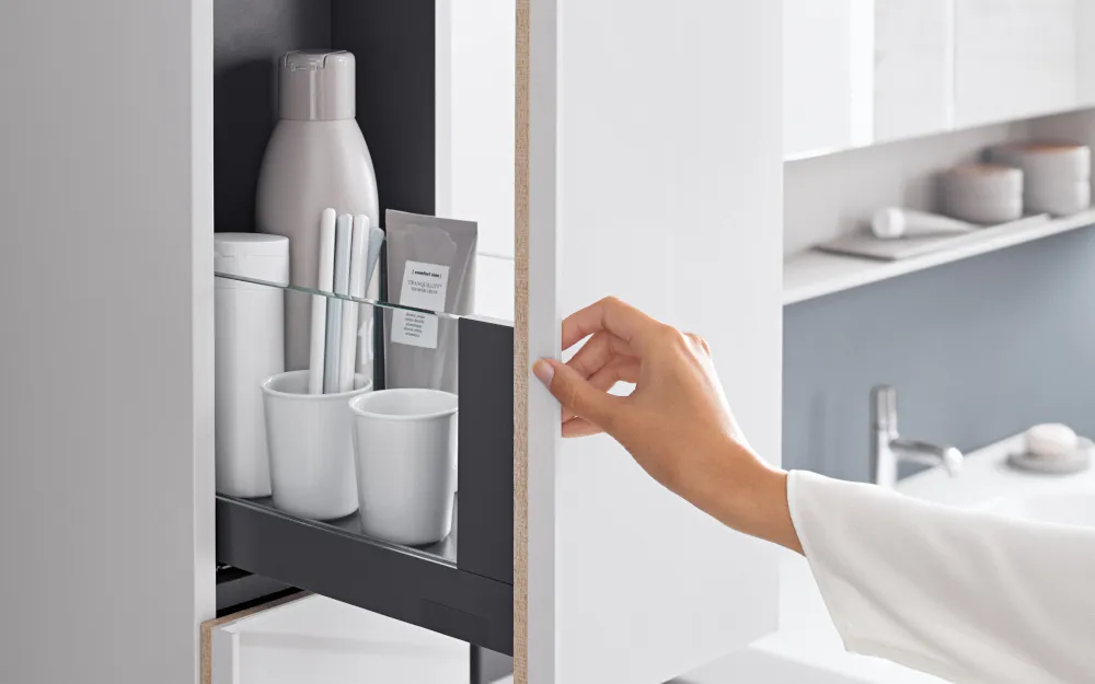 Die Serie Acanto von Geberit wurde von Designern auf Grundlage von Produkttests mit Konsumenten entwickelt, so dass ein breites Spektrum von Bedürfnissen des Alltags erfüllt werden kann. Vor allem das Innenleben der Möbel verdeutlicht dies: Flexible Ordnungsboxen für die Auszüge, Fächer und Ablagen in den Innentüren sorgen für Ordnung. Magnettafeln erlauben es, Ablagekörbe oder Regale genau dort anzubringen, wo Kosmetikartikel gerade gebraucht werden. Alle Anordnungen lassen sich leicht wieder rückgängig machen oder nach Laune verändern.