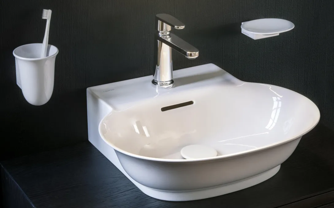 Zusätzlich konnte LAUFEN jedoch eine Version mit integriertem Überlauf und Ablauf entwickeln, sodass sich in der Waschtischschale jetzt auch Wasser aufstauen lässt. (Nicht im Bild.)