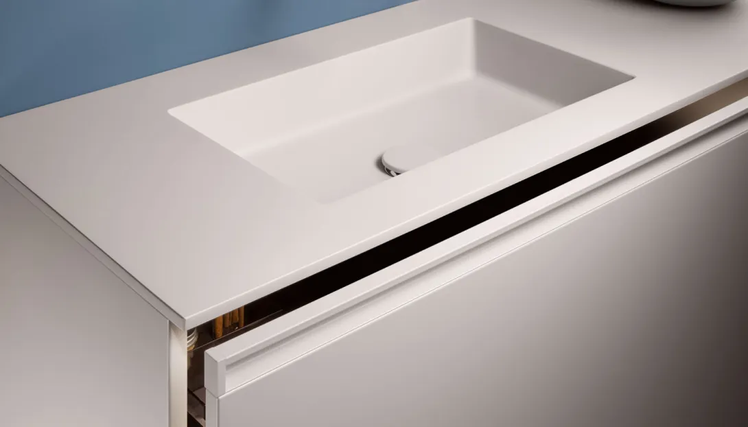 • Kombinierbar mit integrierten Becken, Aufsatzwaschbecken, offenen Elementen und Unterschränken